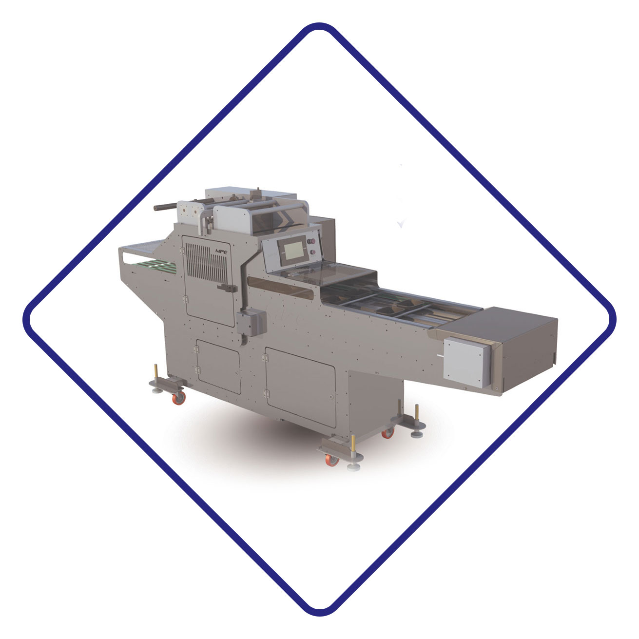 The MPE i-0 is an inline twin lane all electric indexing push bar sealing system.